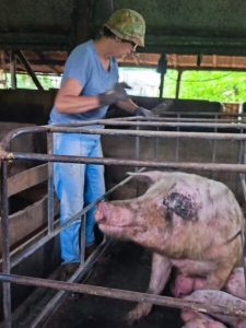 En el marco del trabajo de acompañamiento técnico que se realiza con las familias productoras, se desarrollaron tareas de sanidad animal junto a la productora Elena, aplicando tratamientos médicos curativos y preventivos en sus lotes de lechones, con el objetivo de mejorar el estado general y evitar posibles complicaciones tras las lluvias de los últimos días.