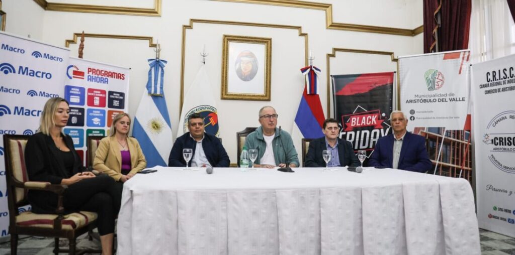 El gobernador Hugo Passalacqua participó en la presentación del Black Friday Aristóbulo del Valle, que se llevará adelante del 11 al 13 de diciembre. La medida busca fortalecer el comercio y la industria locales mediante la articulación entre los sectores público y privado. La edición anterior reunió a más de 50 comercios y este año participan automáticamente los adheridos a los programas Ahora Misiones, Ahora Bienes Durables, Ahora Construcción y Ahora Neumáticos.