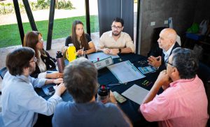 La instancia de trabajo se dividió en dos momentos y contó con la ayuda de facilitadores para guiar las consignas y cuidar los tiempos. En el primer momento, los participantes se enfocaron en el análisis de las fortalezas, oportunidades, debilidades y amenazas, previamente relevadas en el sector de Inclusión Social e Identidad Local. El segundo momento fue destinado a debatir y empezar a identificar cuáles serán los factores claves para el desarrollo de esta etapa de la ciudad en los próximos diez años.