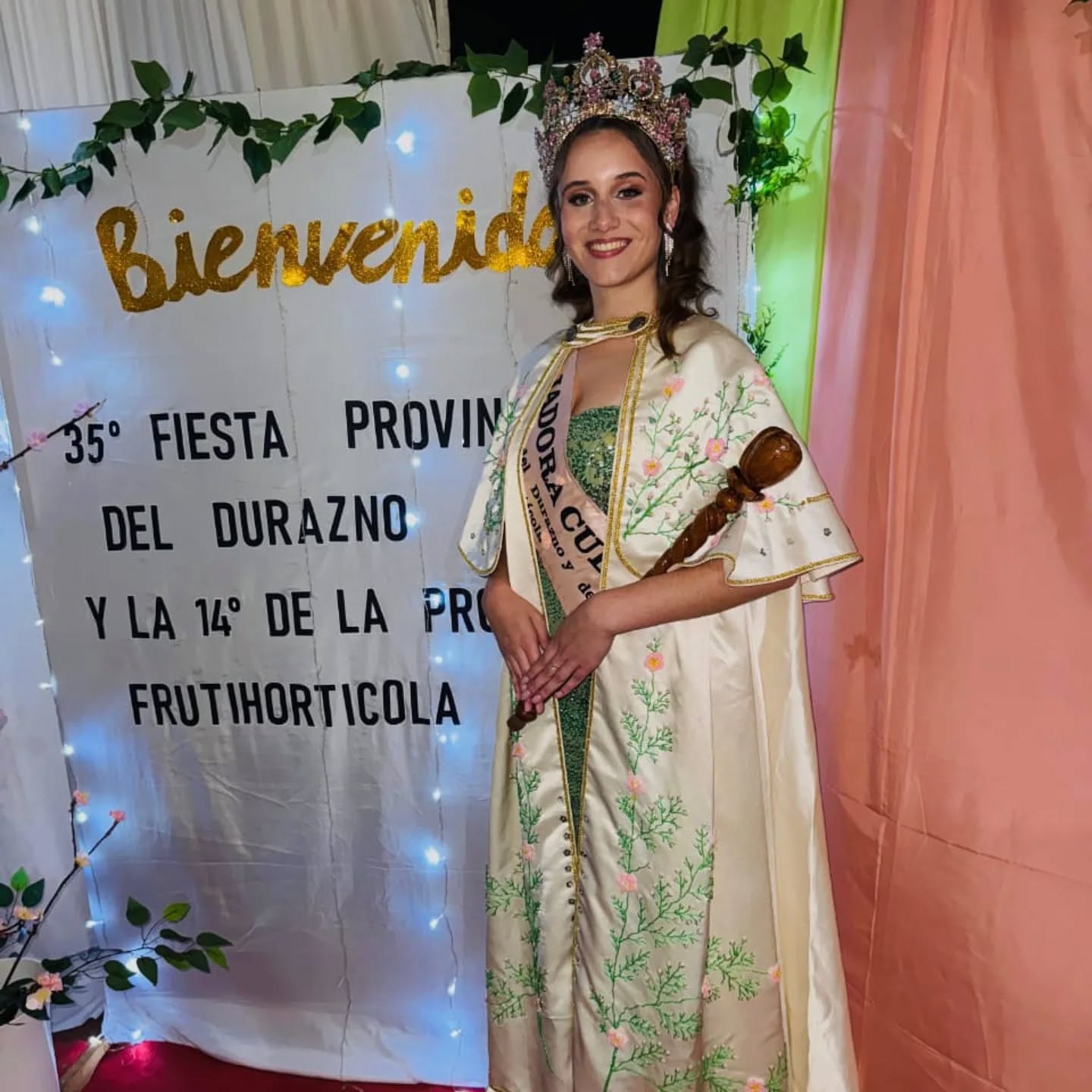 La 35° edición de la Fiesta Provincial del Durazno y 14° de la Producción Frutihortícola vivió su noche más emotiva el sábado 18 de octubre, cuando se llevó a cabo la elección de la nueva Embajadora Cultural. El evento, que reunió a delegaciones de toda la provincia, se desarrolló en un marco de celebración popular, que reunió a toda la comunidad local y turistas con música en vivo, feria de emprendedores y presencia institucional, acompañando al intendente, Gaspar Dudek.