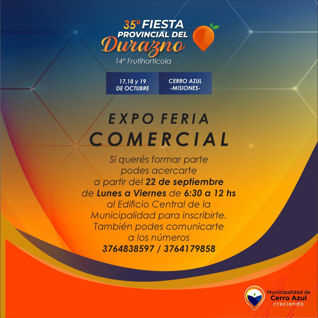 Del 17 al 19 de octubre se vivirá la 35º edición de la Fiesta Provincial del Durazno y 14º de la Producción Frutihortícola en Cerro Azul, una celebración que promueve la producción, pone en valor el trabajo local, y se convirtió en uno de los clásicos eventos del turismo regional.