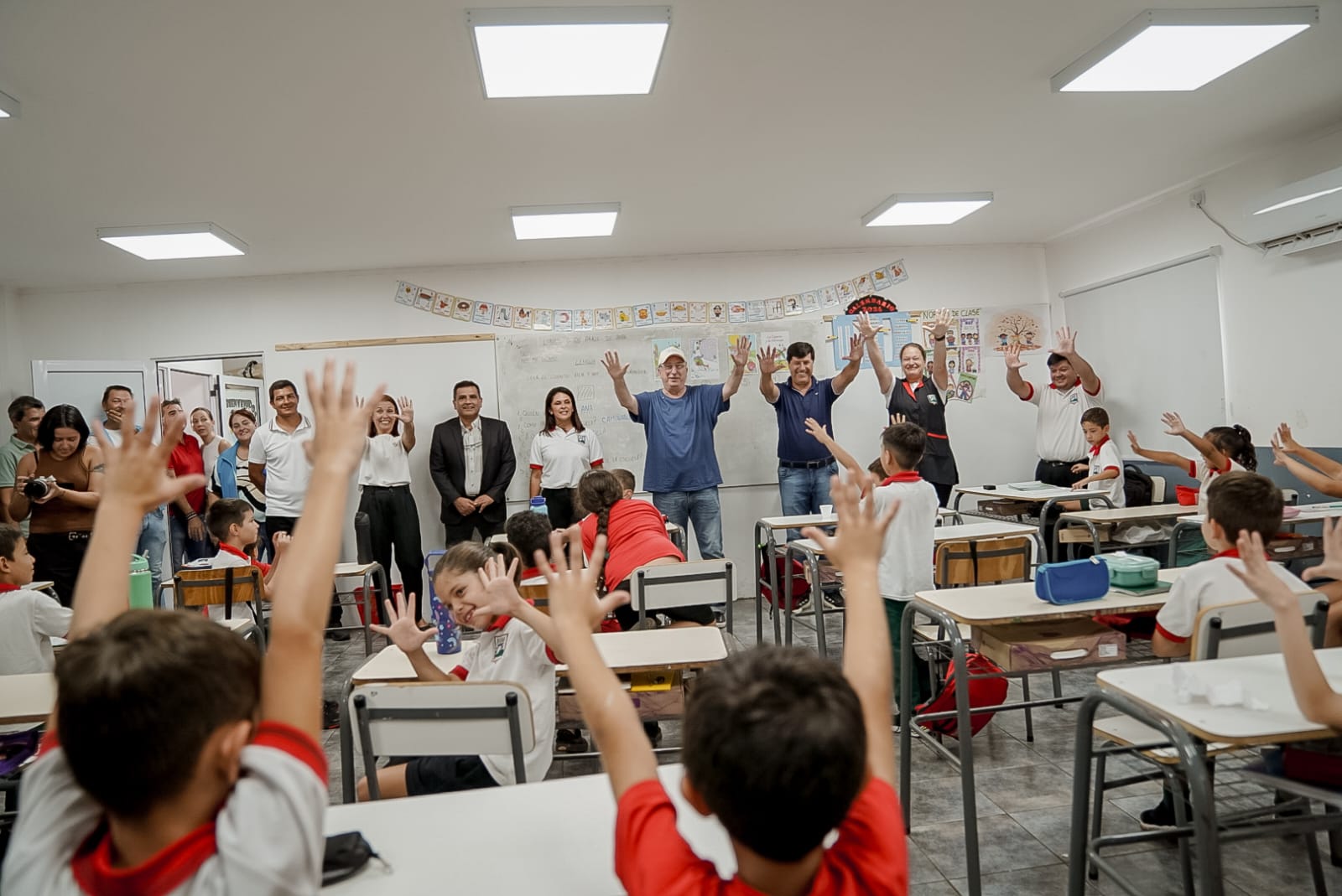 En el marco de la actividad, el gobernador también visitó la Escuela de Frontera N.º 717, donde dialogó con alumnos, docentes y directivos.