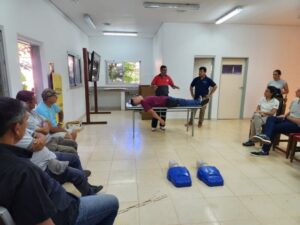 La capacitación estuvo a cargo del técnico superior en Emergencias Prehospitalarias Marco Rojas, quien brindó conocimientos orientados a la actuación inmediata frente a situaciones críticas que puedan presentarse durante la actividad turística.