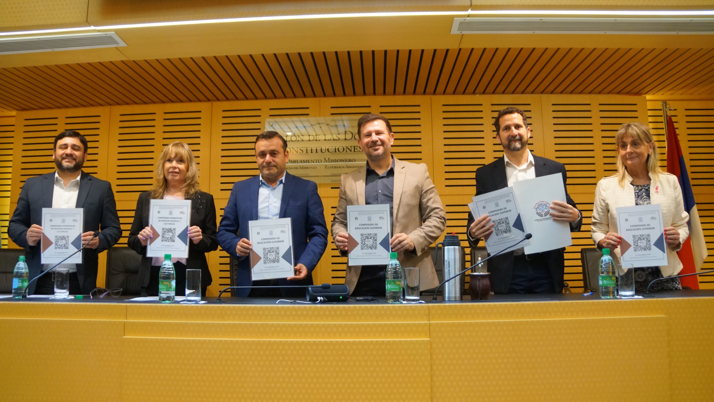 Durante el encuentro, realizado en el Salón de las Dos Constituciones, la Cámara de Representantes firmó un convenio de colaboración con la Facultad de Ciencias Económicas de la Universidad Nacional de Misiones, destinado a la elaboración del digesto jurídico propio de esa unidad académica; y otro con la Facultad de Humanidades y Ciencias Sociales, orientado al seguimiento, acompañamiento y evaluación de las leyes sociales y culturales de la provincia. Además, se realizó la presentación del Compendio Jurídico de Educación Superior, que reúne toda la normativa provincial vigente vinculada a ese nivel educativo.