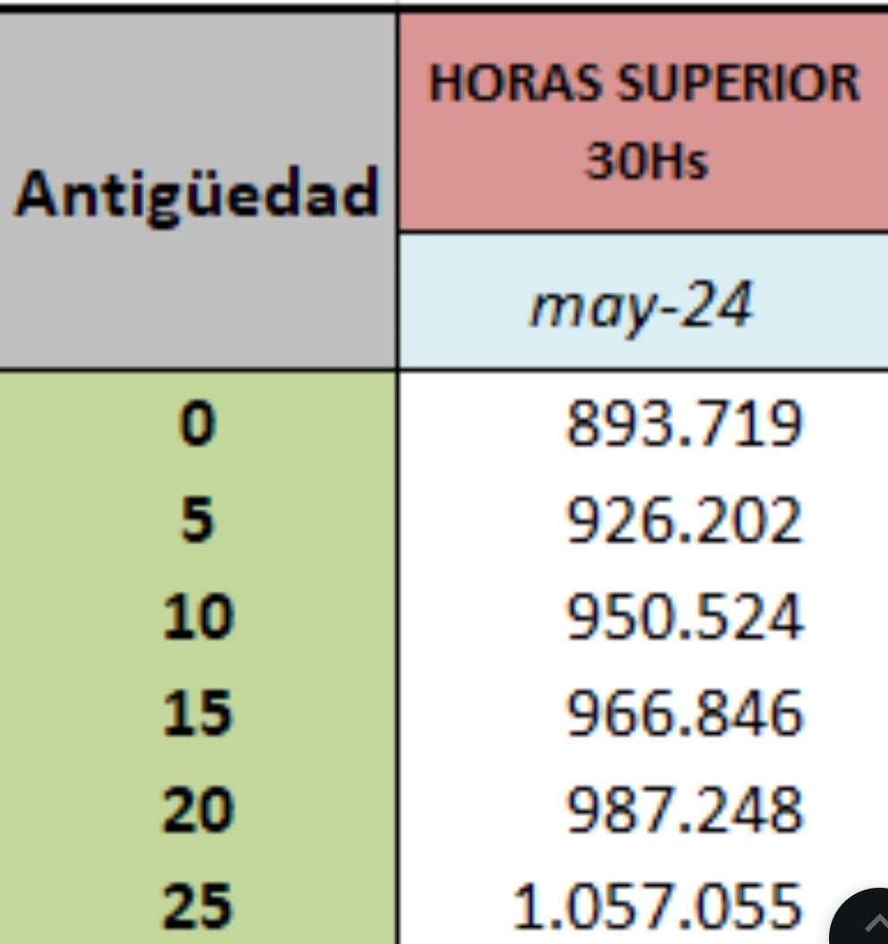 En tanto que docentes de nivel secundario con 21 horas sin antigüedad cobrará 562.898 pesos y si tiene las 42 horas sin antigüedad cobrará 973.010 pesos; docentes de nivel superior por 30 horas sin antigüedad cobrará 893.719 pesos, pudiendo tomar 12 horas más secundaria.