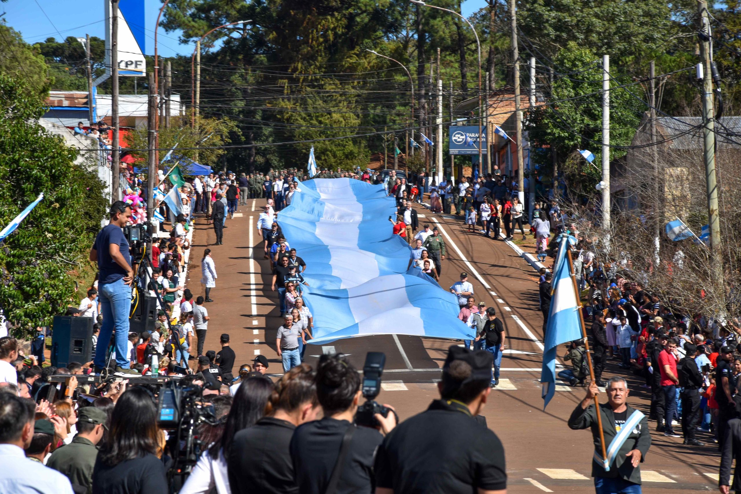 “Hoy reafirmamos una Argentina libre, justa y solidaria; desde acá, desde San Pedro, y siempre dije que estos son los lugares donde día a día se reivindica la soberanía nacional. San Pedro, El Soberbio, Bernardo de Irigoyen, San Antonio, y Andresito, son lugares donde levantar la bandera argentina fue durante muchos años un gran desafío, porque siempre fueron bombardeados por cuestiones externas, por eso elegimos este lugar, porque merece ser reivindicado históricamente en el esfuerzo que hacen todos los sampedrinos por esta soberanía argentina”, expresó Ahuad.