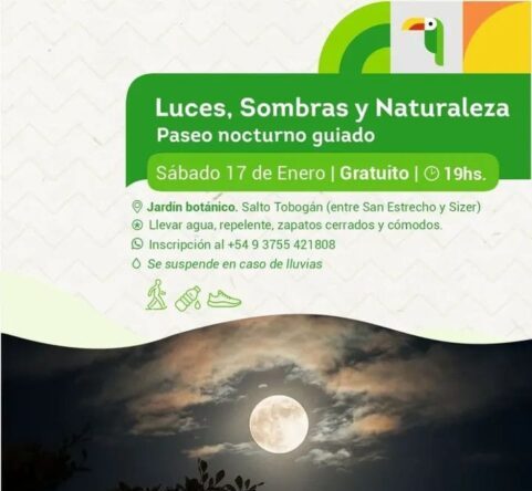 La Dirección de Turismo, Recreación y Cultura de Oberá reedita esta experiencia inmersiva pensada en el disfrute de locales y visitantes. Será este sábado 17 de enero, a partir de las 19 horas en el Jardín Botánico (calle Salto Tobogán, entre San Estrecho y Sizer, Villa Schuster) y con acceso libre y gratuito. Las inscripciones se encuentran abiertas, los interesados deben enviar un mensaje de WhatsApp al 3755421808.