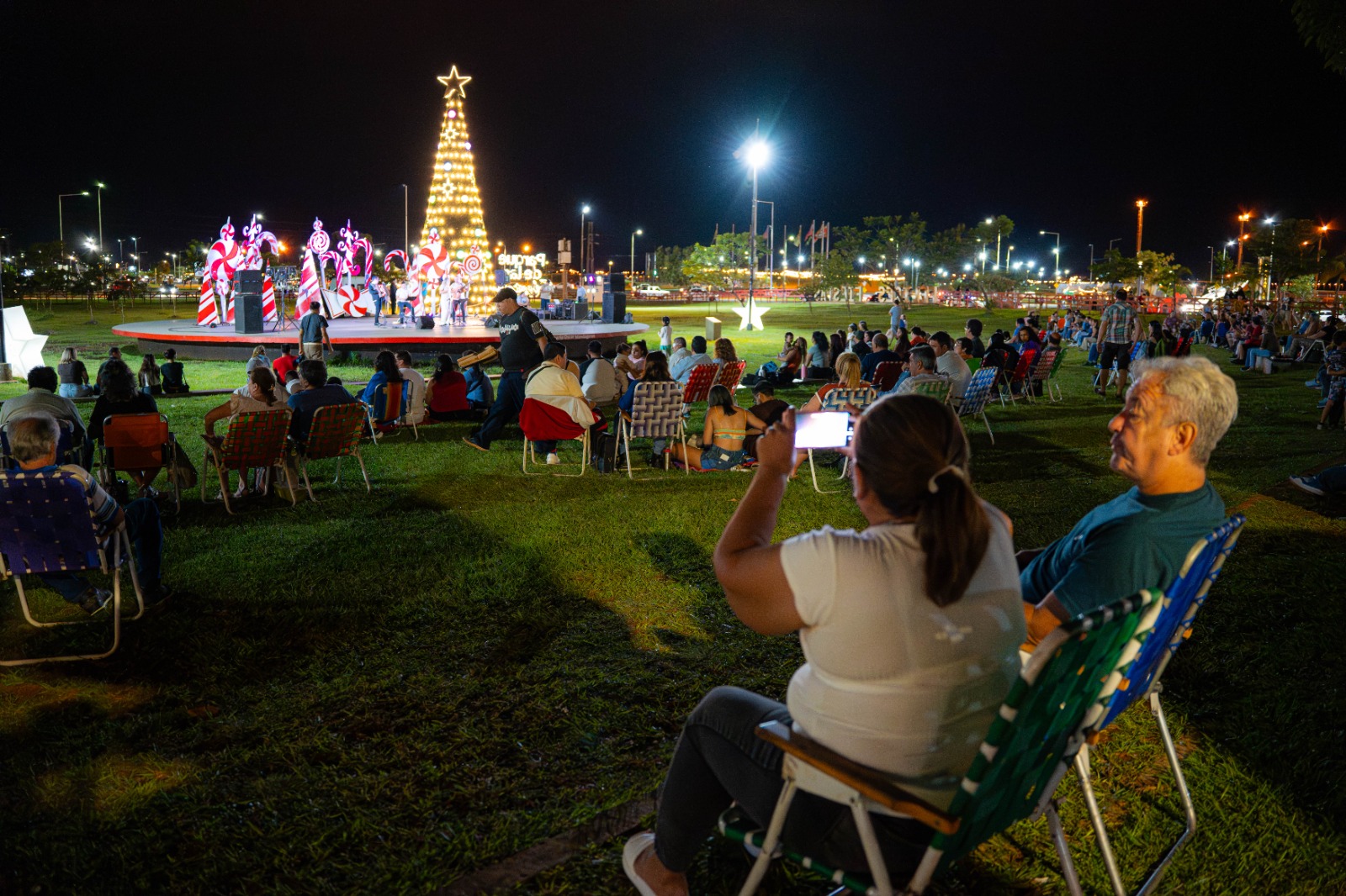 Con un clima fresco pero agradable, el público acompañó cada pieza musical, improvisando una pista de baile sobre el verde césped del parque. Familias, parejas y grupos de amigos se animaron a moverse al ritmo del folclore, en una escena que despertó la alegría tanto de los artistas como de quienes alentaban desde el público, entre risas, palmas y aplausos sostenidos. cerrando una noche marcada por la música, la danza y la sana diversión.